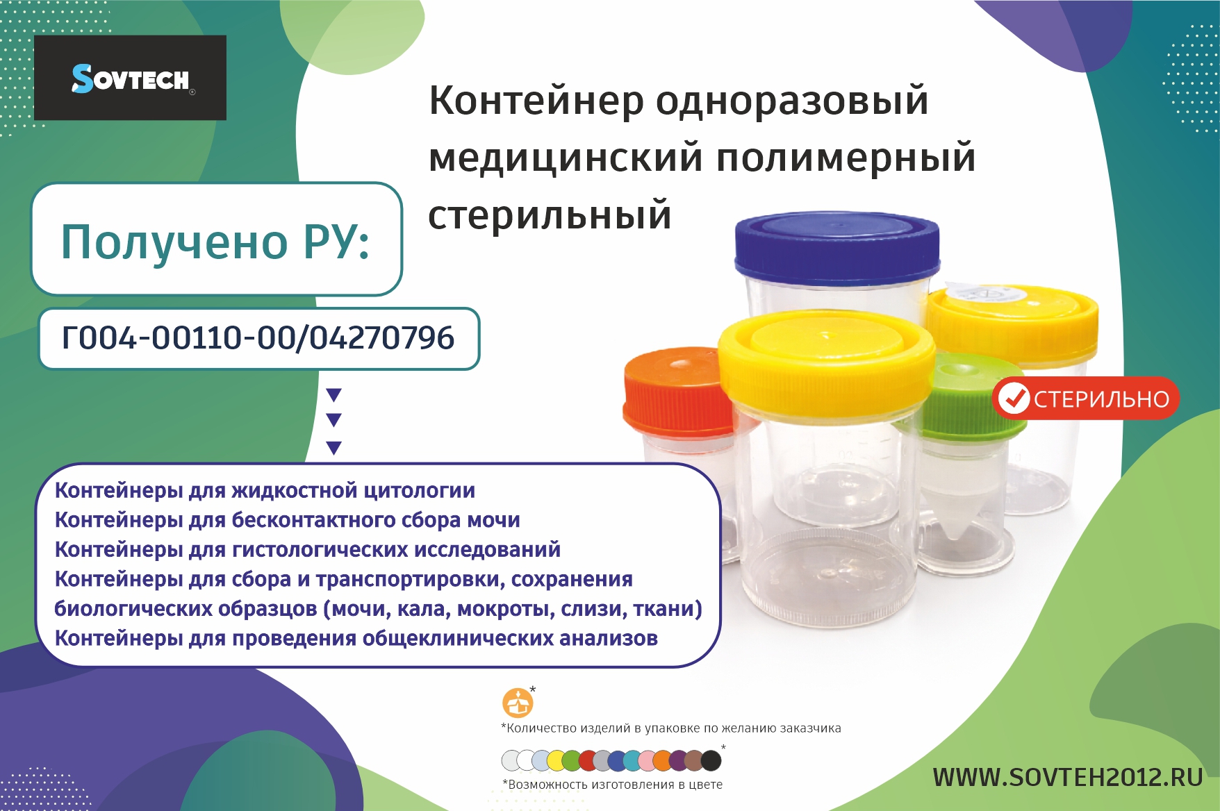 SOVTECH – разработчик, производитель, поставщик медицинских изделий и расходников. При изготовлении используются мировые инновационные технологии. Все продукты клинического назначения проходят строгий технологический, лабораторный контроль. Их качество подтверждают сертификаты соответствия.