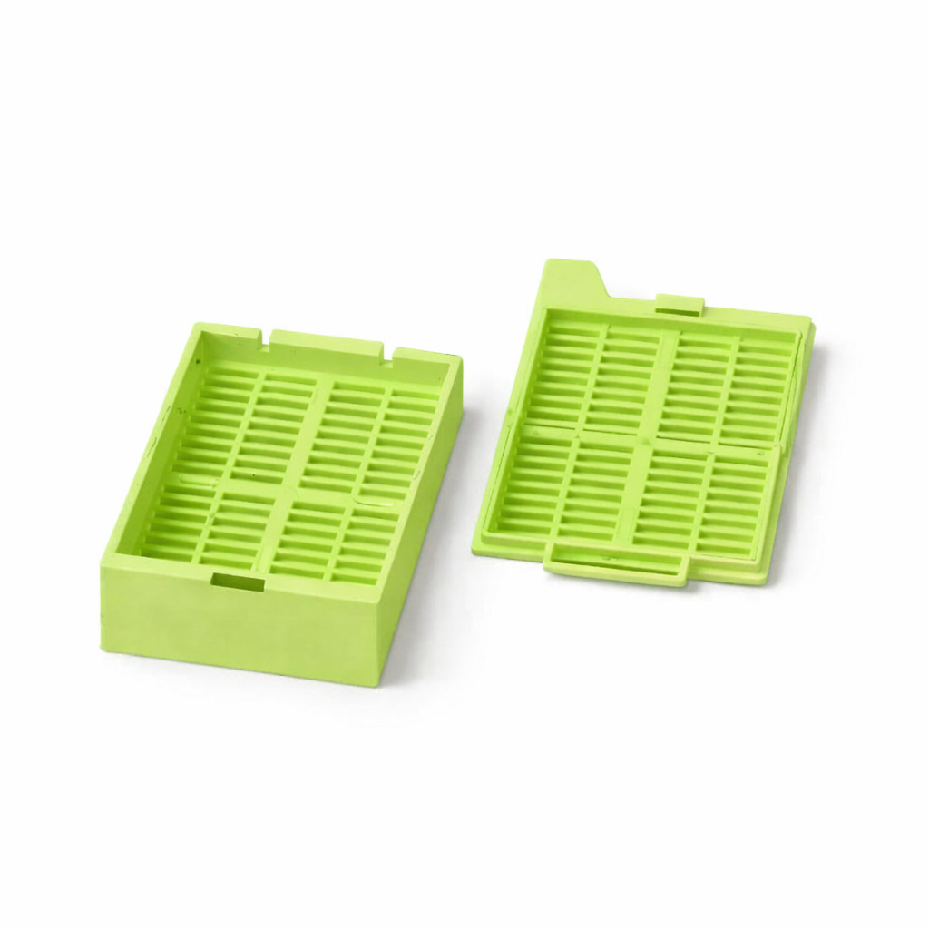 Изделие предназначено для использования в лаборатории для поддержки и содержания клинических образцов ткани, при проводке и заливке материала с целью обеспечения возможности их обработки: фиксации (заливки в парафине), дегидратации, инфильтрации в ходе подготовки к последующему цитологическому или гистологическому исследованию и хранению. Одноразовые пластиковые кассеты удерживают образцы тканей во время обработки и заливки, а также при хранении. Изделие представляет собой контейнер из синтетического полимера с крышкой и дренажными отверстиями для максимизации воздействия жидкости на содержимое. Отлитые из специального полимера высокой плотности, эти кассеты надежно удерживают образцы в жидкости и полностью устойчивы к химическому воздействию гистологических растворителей, нагреву, микроволновому излучению, ультразвуку, органическим растворителям, декальцификаторам, кислотам и щелочам. Эффективные проточные отверстия обеспечивают максимальный обмен жидкостью и надлежащий дренаж. Эта новая модель отличается особым шарниром, удерживающим вместе основание и крышку. Этот шарнир позволяет открывать и закрывать кассеты так часто, как это необходимо, и они всегда надежно запираются. Крышку можно легко снять и снова установить обратно без опасности потери образца, без нарушения конструкции. Процедуру можно проводить многократно без потери надежности соединения основания и крышки. Имеется наклонная поверхность для маркировки, что позволяет идентифицировать образцы на всех этапах встраивания и долгое время после этого в архивах. Могут использоваться в автоматах проводки и применяться с Принтером для маркировки гистологических кассет. Разные варианты цветового исполнения. Нестерильные. Упаковка – диспенсер из картона с фронтальным отверстием для удобства использования.