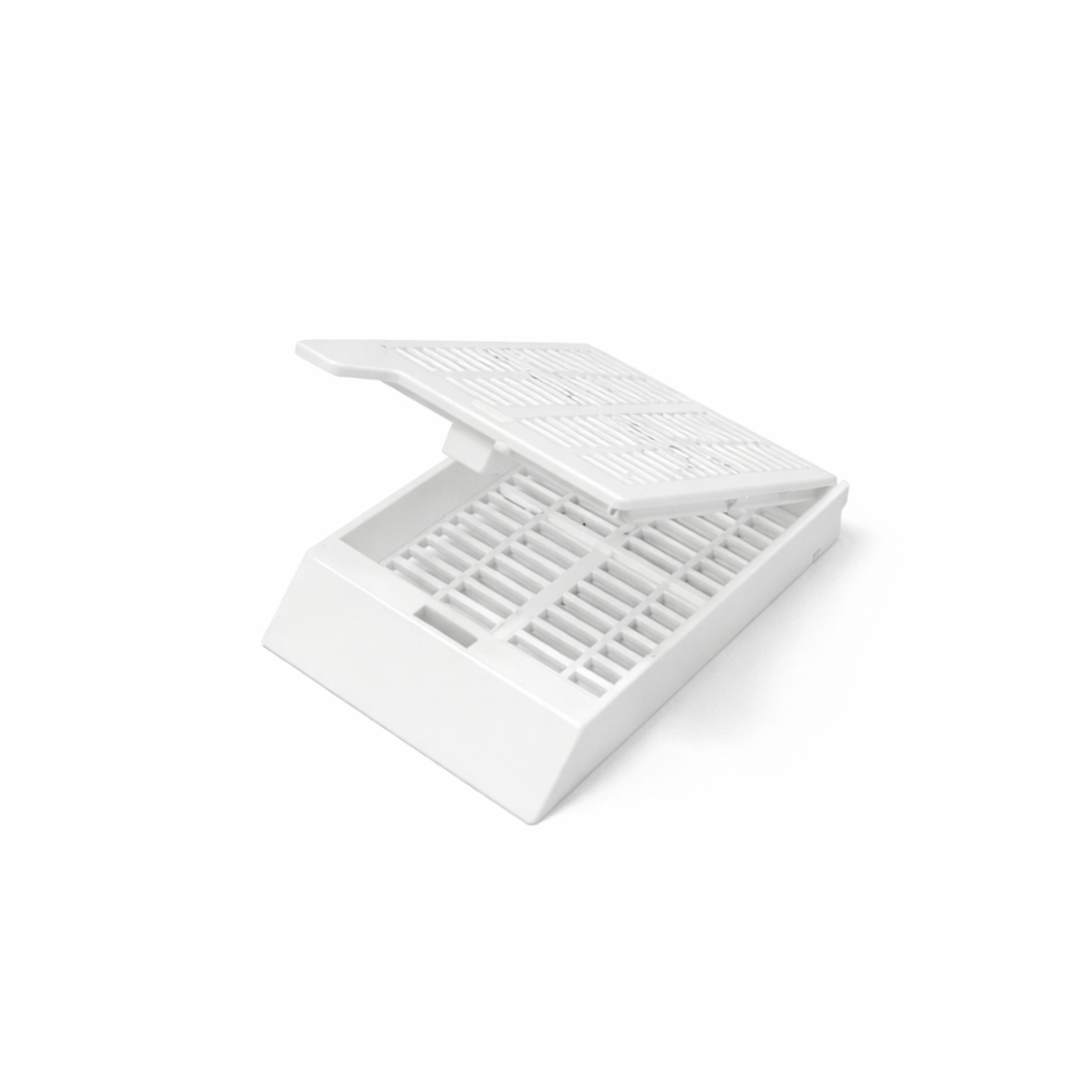 Изделие предназначено для использования в лаборатории для поддержки и содержания клинических образцов ткани, при проводке и заливке материала с целью обеспечения возможности их обработки: фиксации (заливки в парафине), дегидратации, инфильтрации в ходе подготовки к последующему цитологическому или гистологическому исследованию и хранению. Одноразовые пластиковые кассеты удерживают образцы тканей во время обработки и заливки, а также при хранении. Изделие представляет собой контейнер из синтетического полимера с крышкой и дренажными отверстиями для максимизации воздействия жидкости на содержимое. Отлитые из специального полимера высокой плотности, эти кассеты надежно удерживают образцы в жидкости и полностью устойчивы к химическому воздействию гистологических растворителей, нагреву, микроволновому излучению, ультразвуку, органическим растворителям, декальцификаторам, кислотам и щелочам. Эффективные проточные отверстия обеспечивают максимальный обмен жидкостью и надлежащий дренаж. Эта новая модель отличается особым шарниром, удерживающим вместе основание и крышку. Этот шарнир позволяет открывать и закрывать кассеты так часто, как это необходимо, и они всегда надежно запираются. Крышку можно легко снять и снова установить обратно без опасности потери образца, без нарушения конструкции. Процедуру можно проводить многократно без потери надежности соединения основания и крышки. Имеется наклонная поверхность для маркировки, что позволяет идентифицировать образцы на всех этапах встраивания и долгое время после этого в архивах. Могут использоваться в автоматах проводки и применяться с Принтером для маркировки гистологических кассет. Разные варианты цветового исполнения. Нестерильные. Упаковка – диспенсер из картона с фронтальным отверстием для удобства использования.