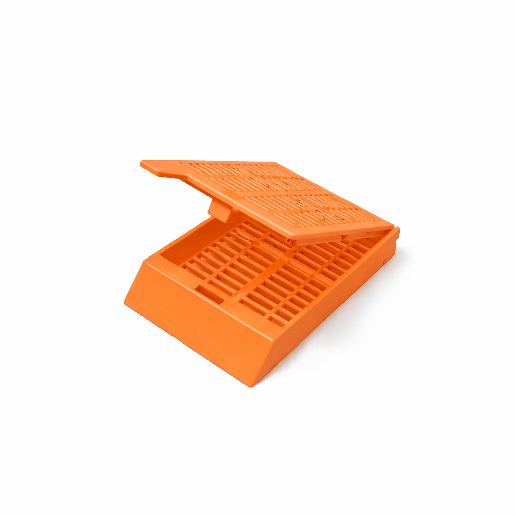 Изделие предназначено для использования в лаборатории для поддержки и содержания клинических образцов ткани, при проводке и заливке материала с целью обеспечения возможности их обработки: фиксации (заливки в парафине), дегидратации, инфильтрации в ходе подготовки к последующему цитологическому или гистологическому исследованию и хранению. Одноразовые пластиковые кассеты удерживают образцы тканей во время обработки и заливки, а также при хранении. Изделие представляет собой контейнер из синтетического полимера с крышкой и дренажными отверстиями для максимизации воздействия жидкости на содержимое. Отлитые из специального полимера высокой плотности, эти кассеты надежно удерживают образцы в жидкости и полностью устойчивы к химическому воздействию гистологических растворителей, нагреву, микроволновому излучению, ультразвуку, органическим растворителям, декальцификаторам, кислотам и щелочам. Эффективные проточные отверстия обеспечивают максимальный обмен жидкостью и надлежащий дренаж. Эта новая модель отличается особым шарниром, удерживающим вместе основание и крышку. Этот шарнир позволяет открывать и закрывать кассеты так часто, как это необходимо, и они всегда надежно запираются. Крышку можно легко снять и снова установить обратно без опасности потери образца, без нарушения конструкции. Процедуру можно проводить многократно без потери надежности соединения основания и крышки. Имеется наклонная поверхность для маркировки, что позволяет идентифицировать образцы на всех этапах встраивания и долгое время после этого в архивах. Могут использоваться в автоматах проводки и применяться с Принтером для маркировки гистологических кассет. Разные варианты цветового исполнения. Нестерильные. Упаковка – диспенсер из картона с фронтальным отверстием для удобства использования.