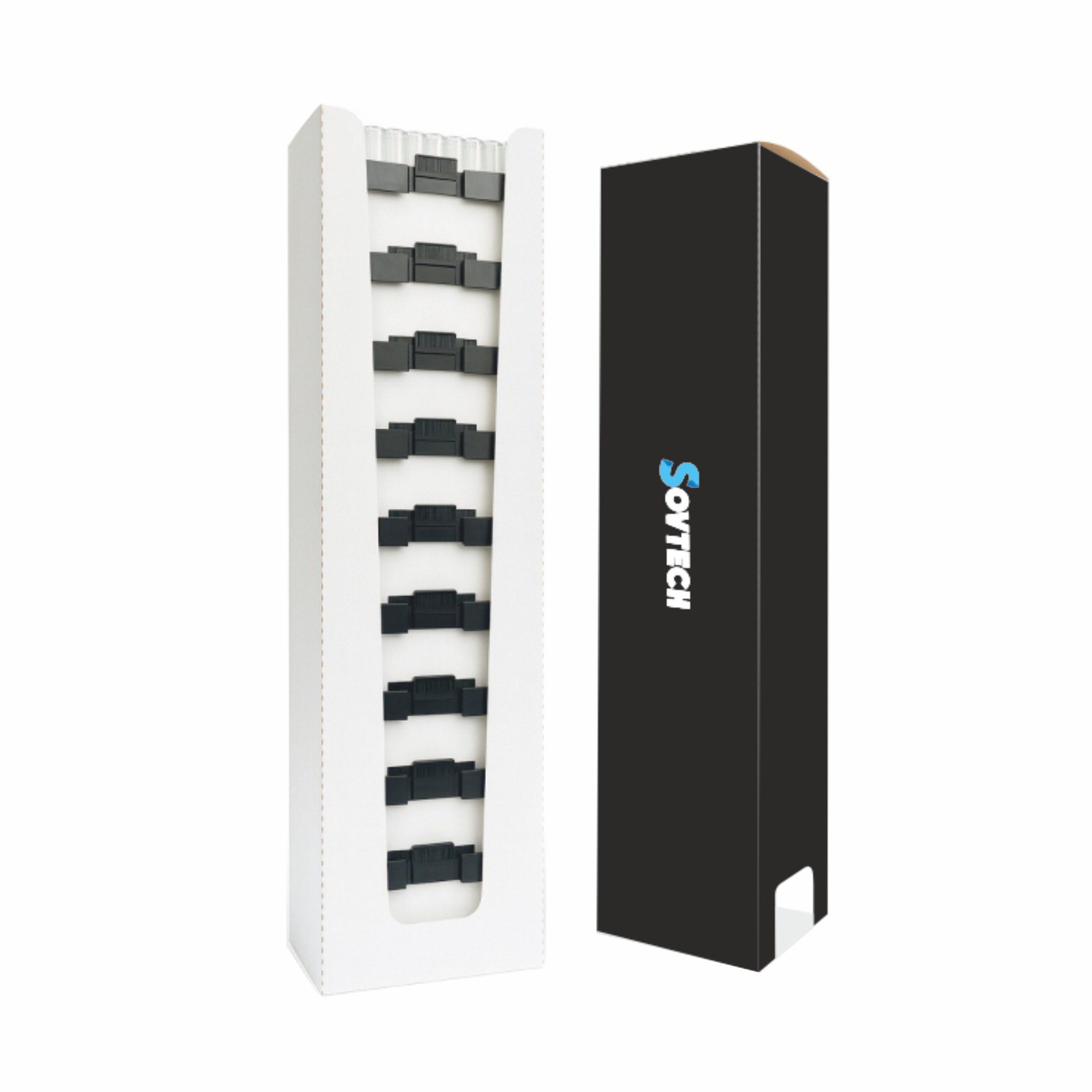 Способ упаковки: 96 штук в штативе. Далее десять штативов укладываются в специальную коробку в виде башни один на другой.